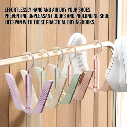 ● Effortlessly hang and air dry your shoes, preventing unpleasant odors and prolonging shoe lifespan with these practical drying hooks.