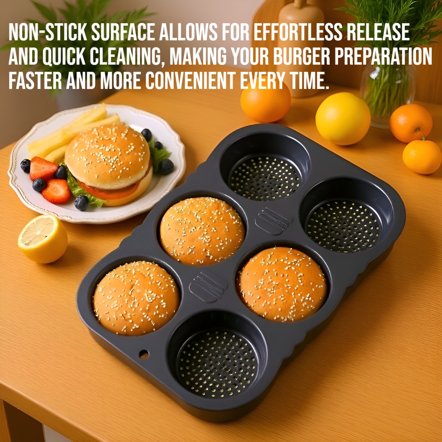 ● Non-stick surface allows for effortless release and quick cleaning, making your burger preparation faster and more convenient every time.