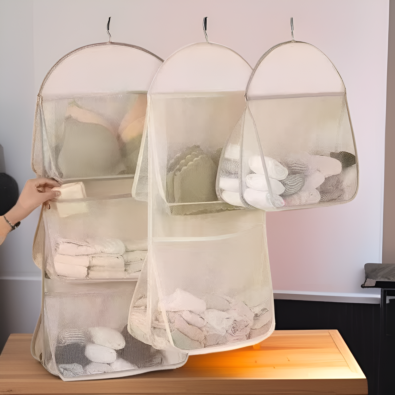 ● Made from durable and breathable mesh material, this storage bag keeps your clothes and socks fresh, visible, and well-ventilated at all times.