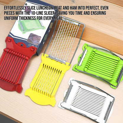 ● Effortlessly slice luncheon meat and ham into perfect, even pieces with the 10-line slicer, saving you time and ensuring uniform thickness for every meal.