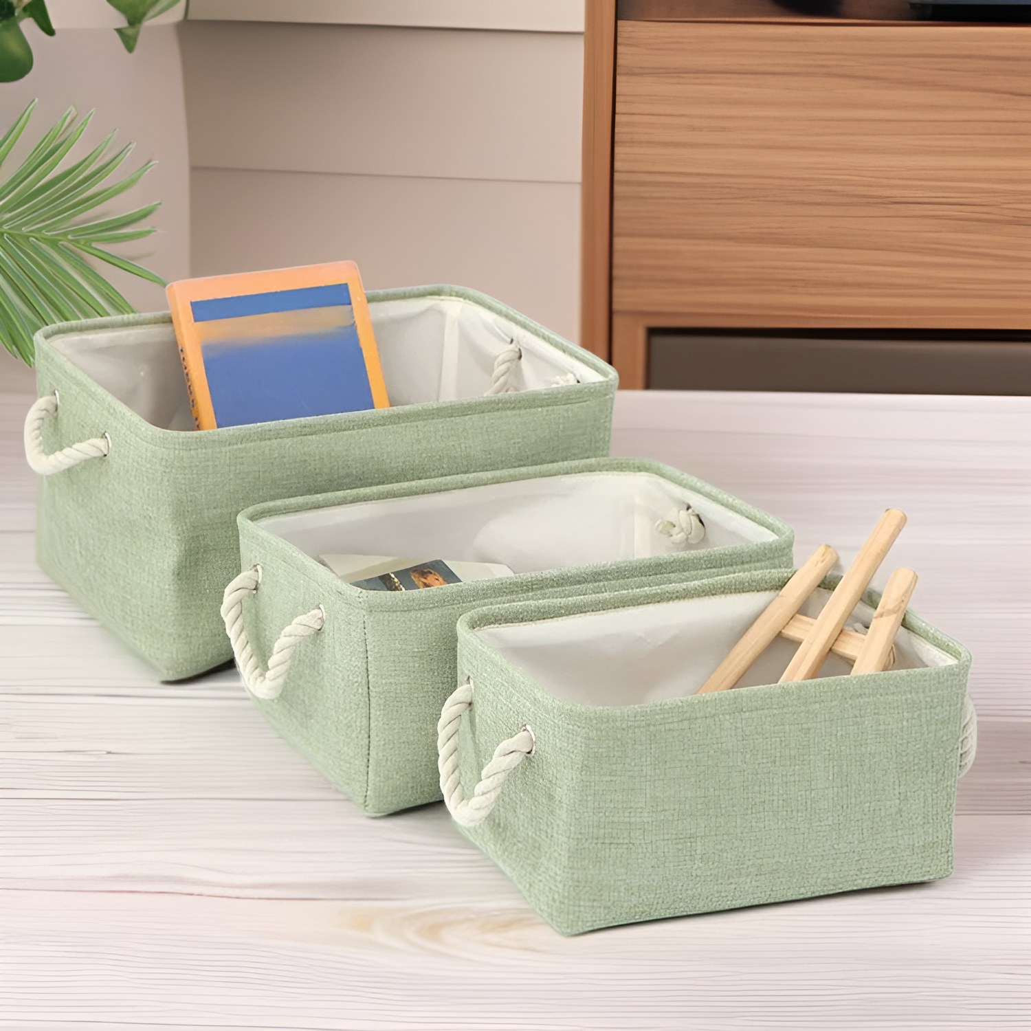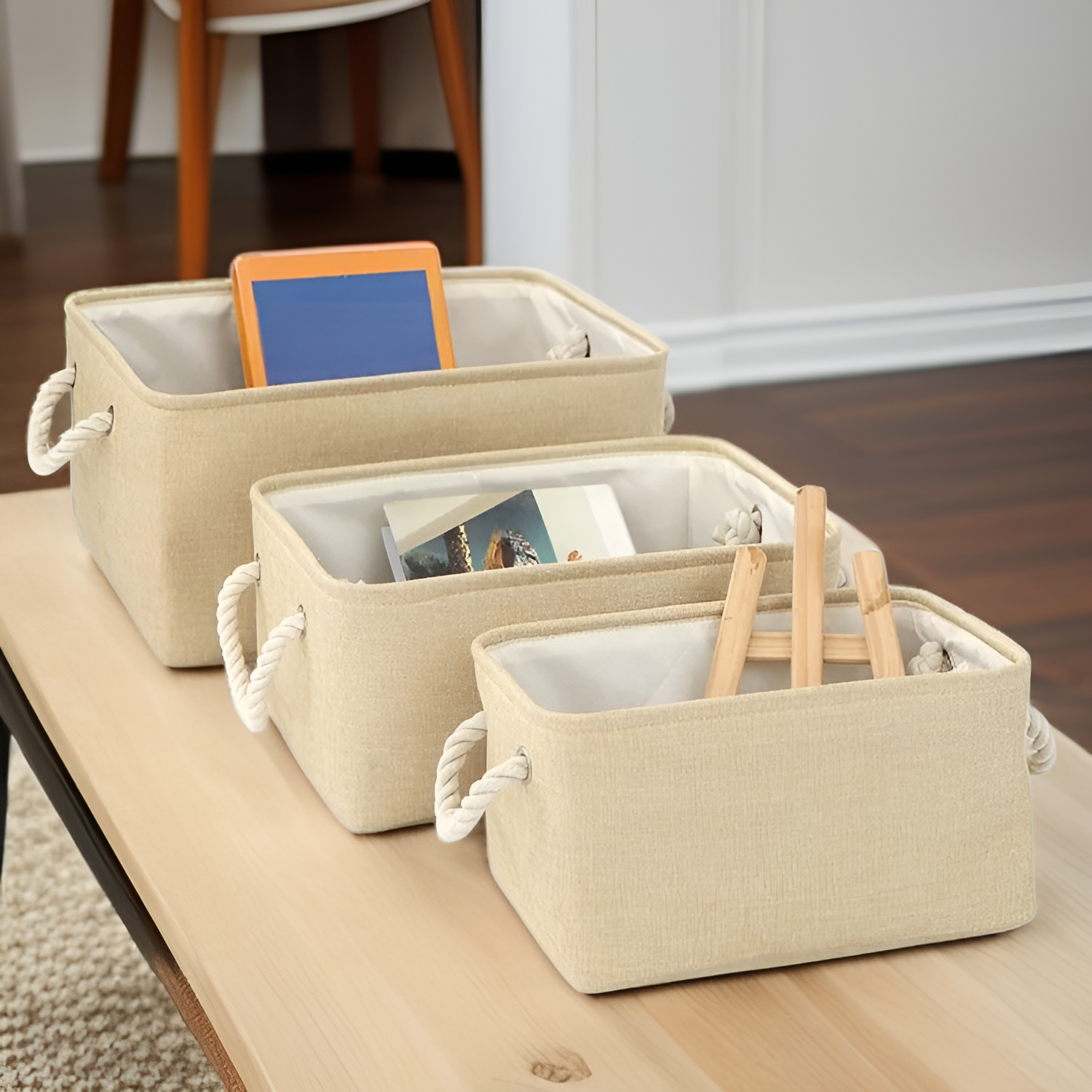 ● Neutral solid color seamlessly complements any décor style, adding a touch of elegance while keeping your space tidy and clutter-free.