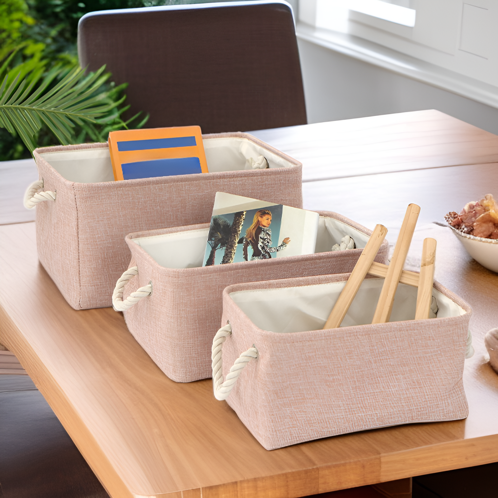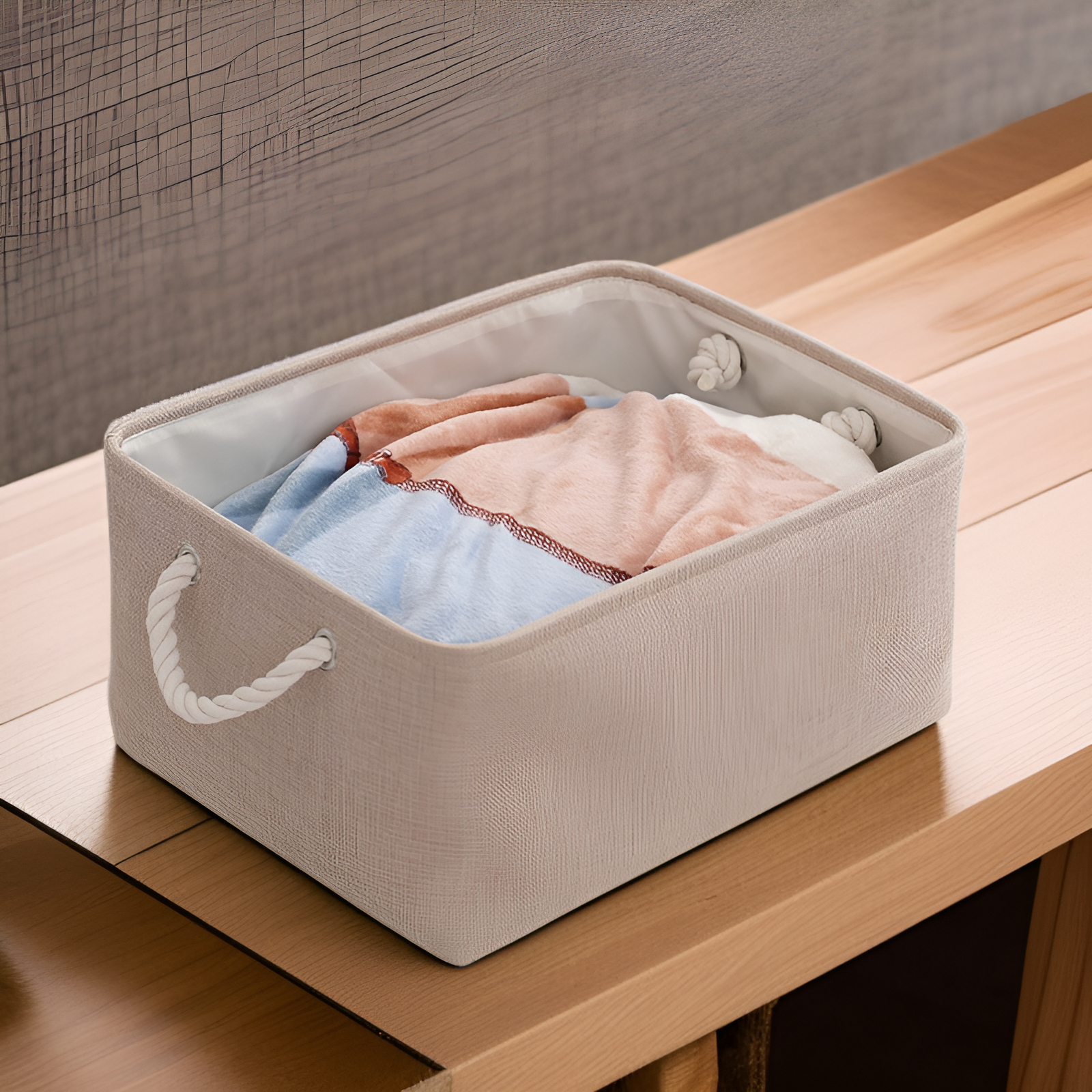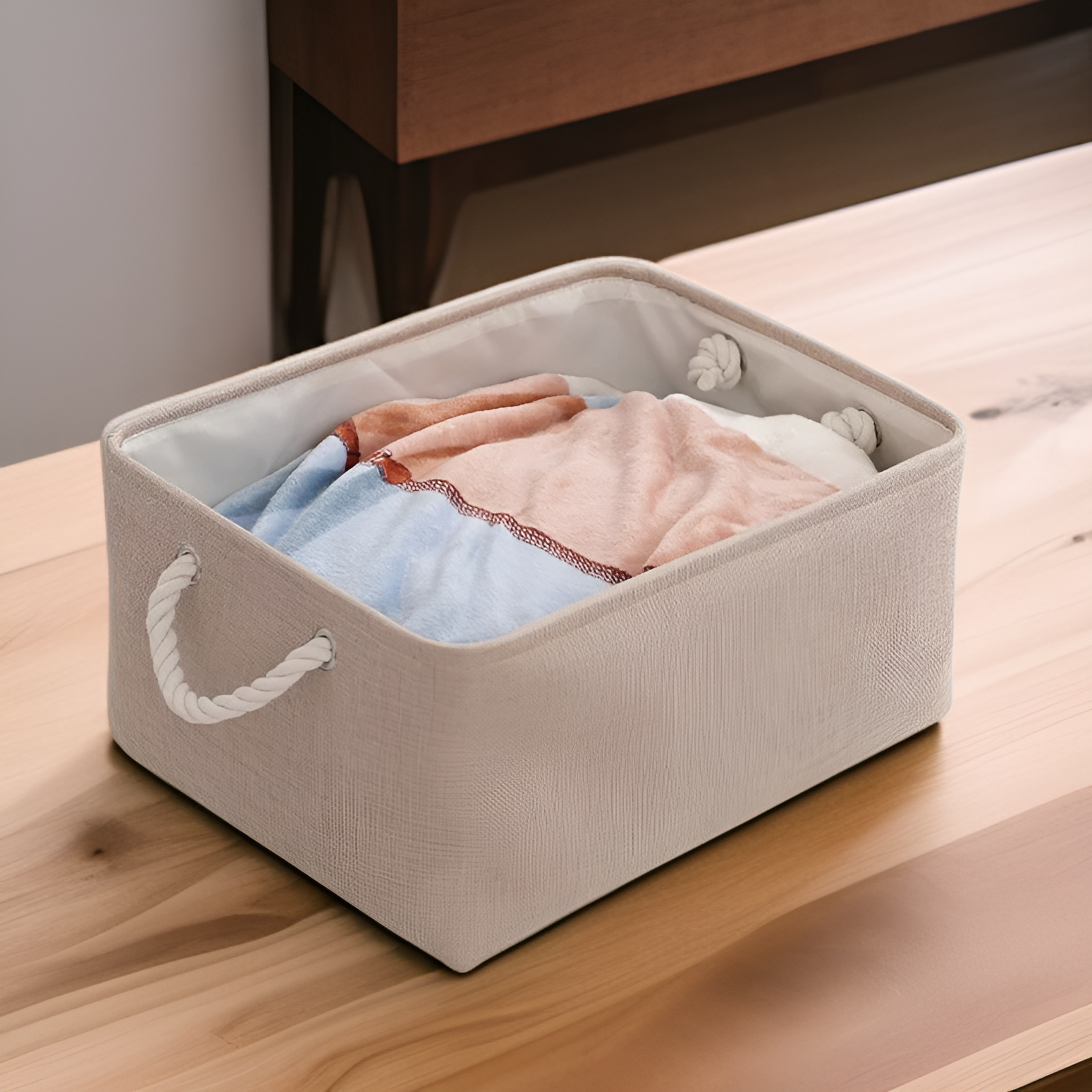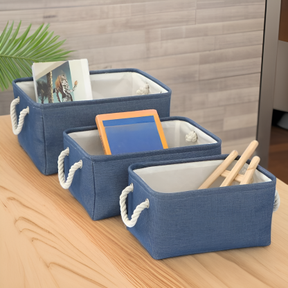 Solid color linen storage basket