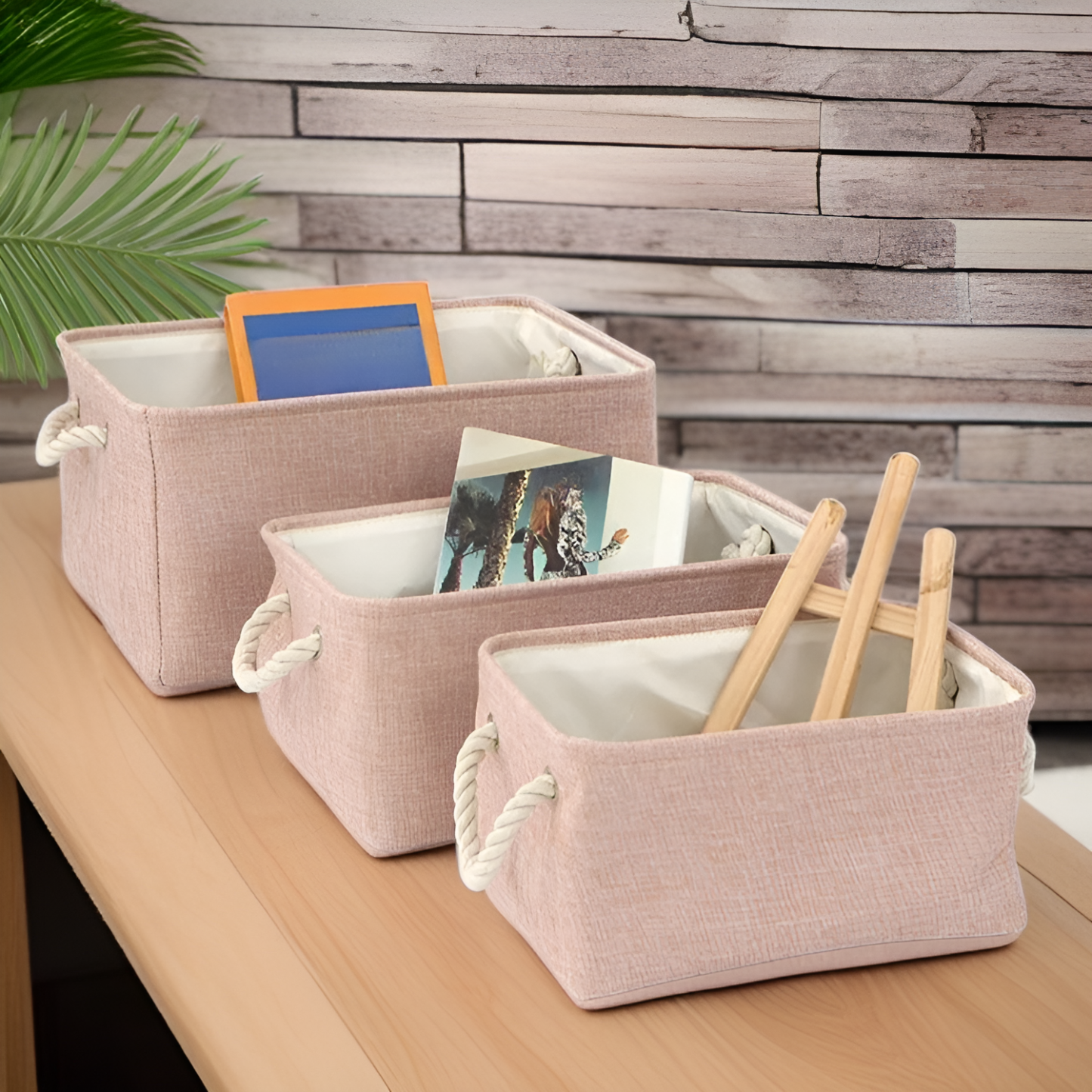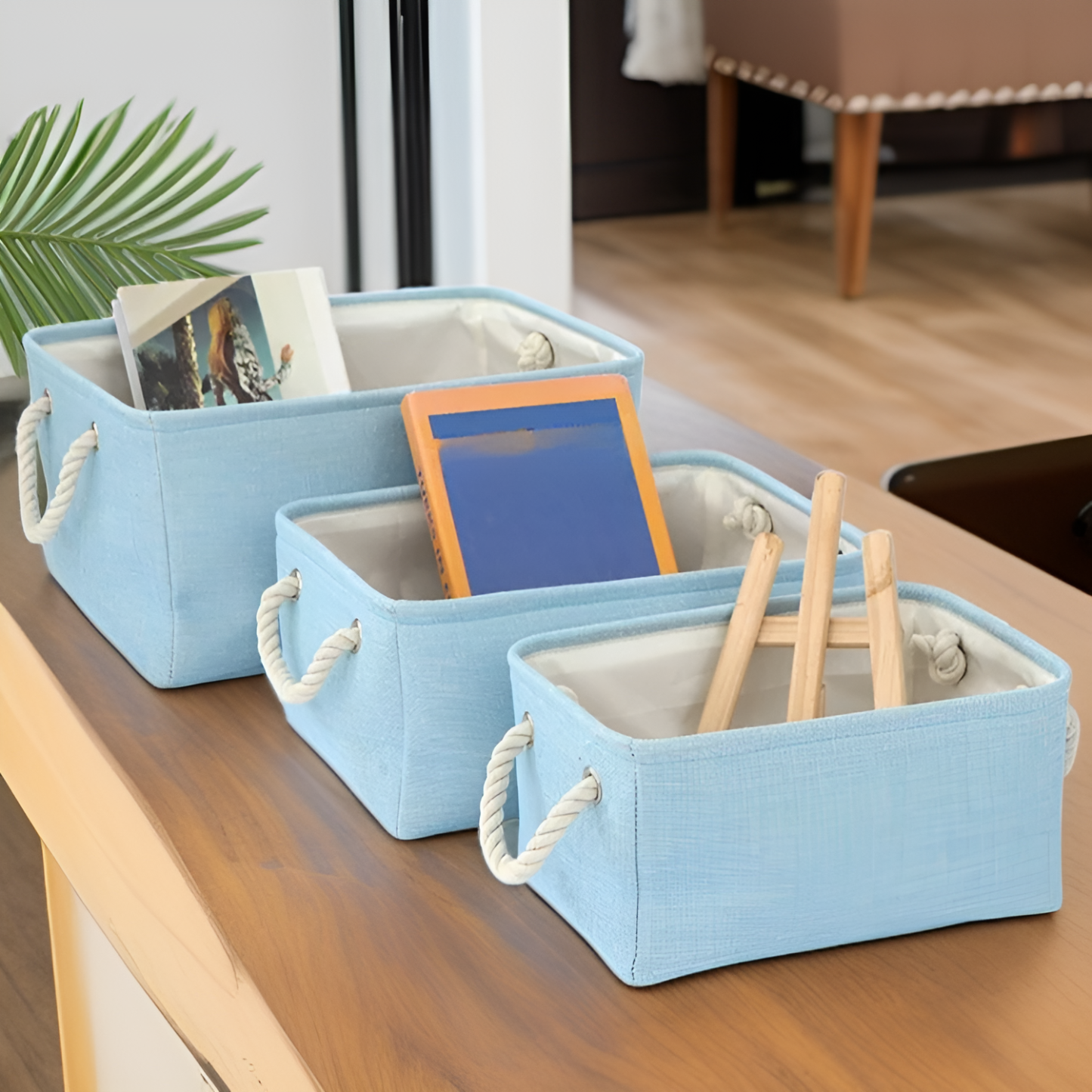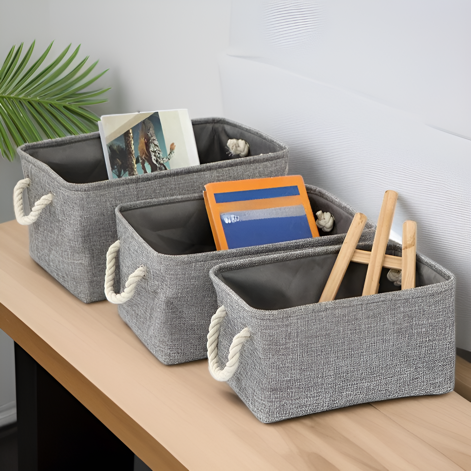 Solid color linen storage basket
