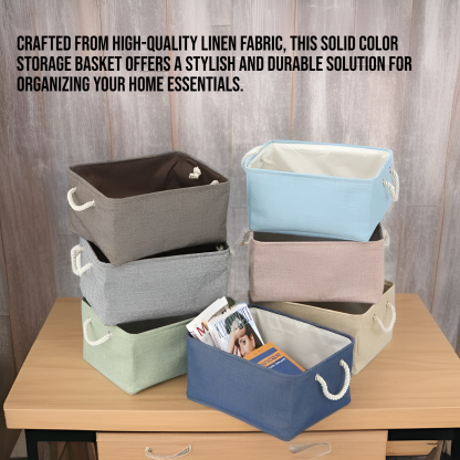 ● Crafted from high-quality linen fabric, this solid color storage basket offers a stylish and durable solution for organizing your home essentials.